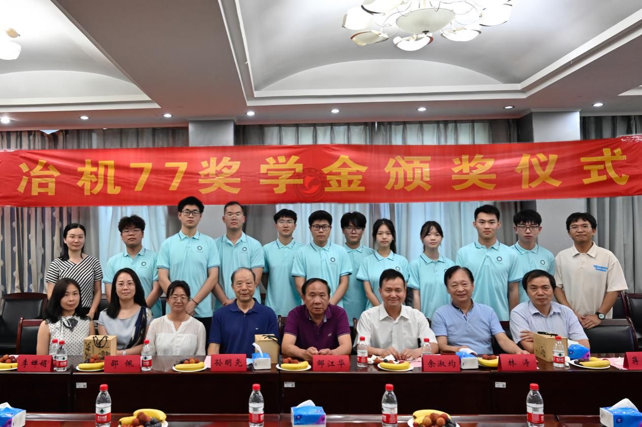 林涛宣读获奖学生名单。孙明尧、李杏、林涛为获奖学生颁发冶机77奖学金。
