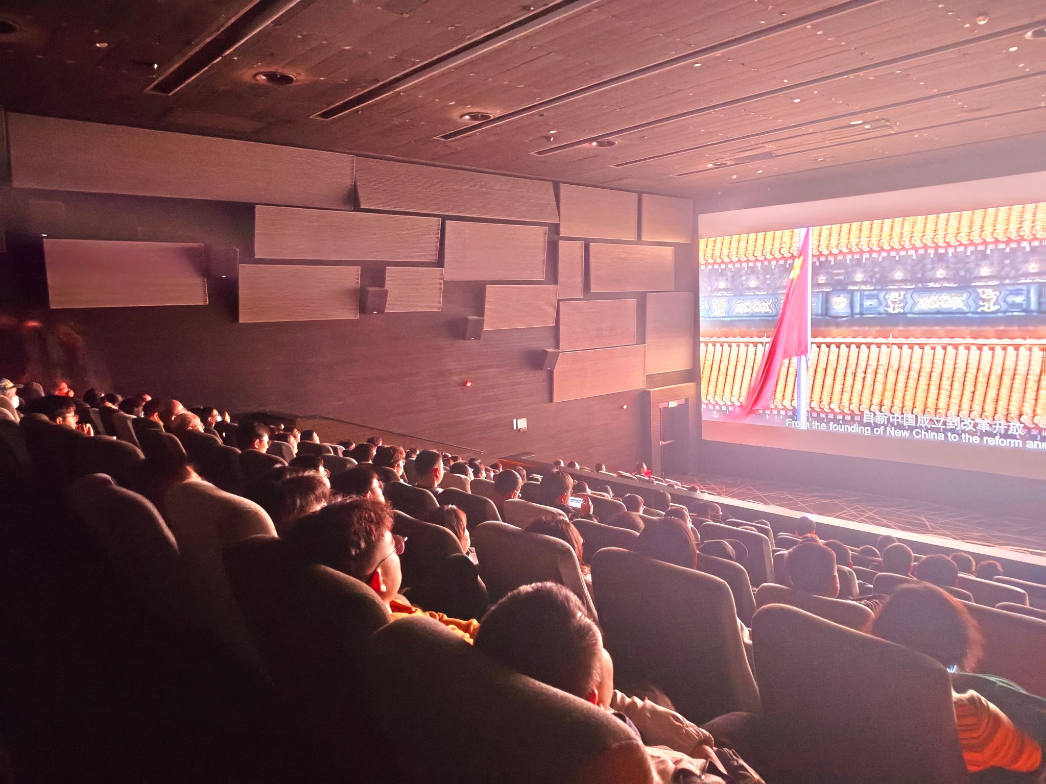 本网讯(通讯员王立帆)为贯彻落实习近平总书记关于“中国人的饭碗任何时候都要牢牢端在自己手中”和“要把修复长江生态环境摆在压倒性位置,共抓大保护,不搞大开发”的重要讲话精神,3月14日下午,我院党委组织党员干部、群众代表、学生代表等130人走进电影院集中观看主题电影《大国粮仓》和《一江清水》。