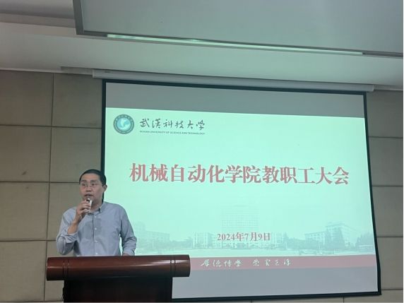 7月9日下午,机械学院在青山校区主楼0212室举行暑期前全体教职工大会,总结2024年学院上半年工作,部署暑期主要工作。学院党委书记李婵娟、执行院长汪朝晖,副院长王兴东、王蕾、向峰、蒋佐斌以及全体教师参加会议。汪朝晖主持会议。