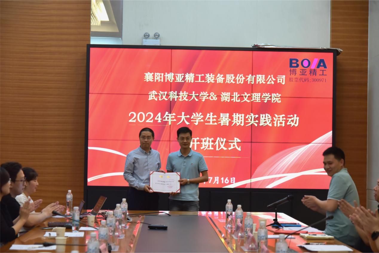 2024年7月16日,由科学技术发展院院长夏绪辉教授、机械自动化学院执行院长汪朝晖教授、副院长王蕾教授以及绿色智能制造工程研究所所长张泽琳教授带队,15名机械自动化学院学生赴襄阳博亚精工装备股份有限公司参加大学生暑期实践活动。