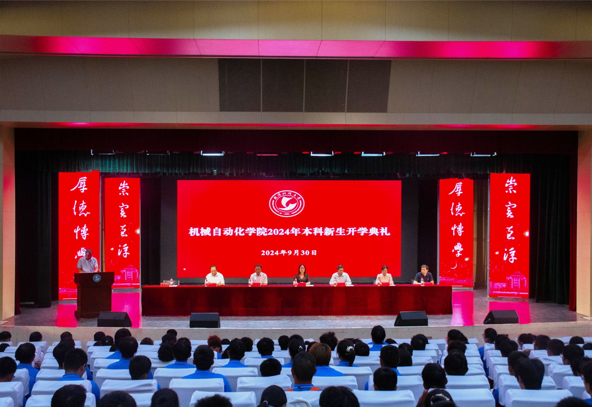 (通讯员闵舟 陈蔓)9月30日,机械学院于黄家湖校区千人大礼堂隆重举行2024级本科新生开学典礼,机械学院党委书记李婵娟,执行院长汪朝晖,副院长王兴东、王蕾、向峰、蒋佐斌及各专业教师代表,辅导员,全体2024级本科新生参加,此次典礼由机械学院党委副书记瞿孝平主持。