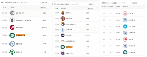 机械工程、仪器科学排名情况