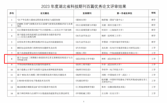 林昕教授撰写的论文入选2023年度湖北省科技期刊百篇优秀论文
