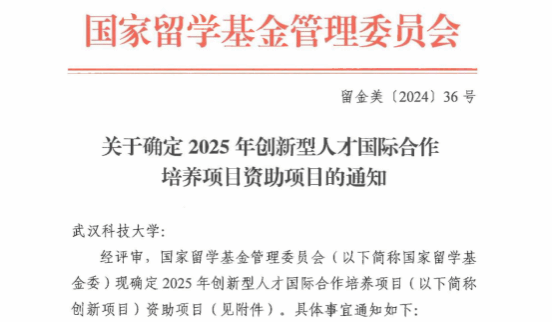 获国家留学基金管理委员会2025年创新型人才国际合作培养项目资助项目