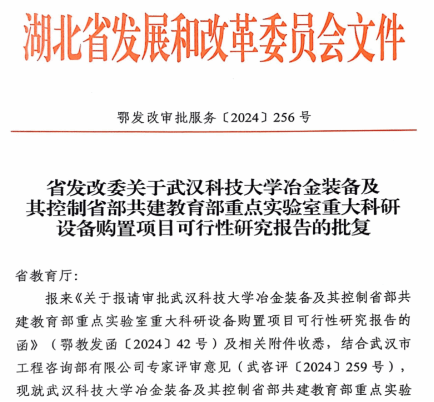 省发改委关于冶金装备及其控制省部共建教育部重点实验室建设的批复