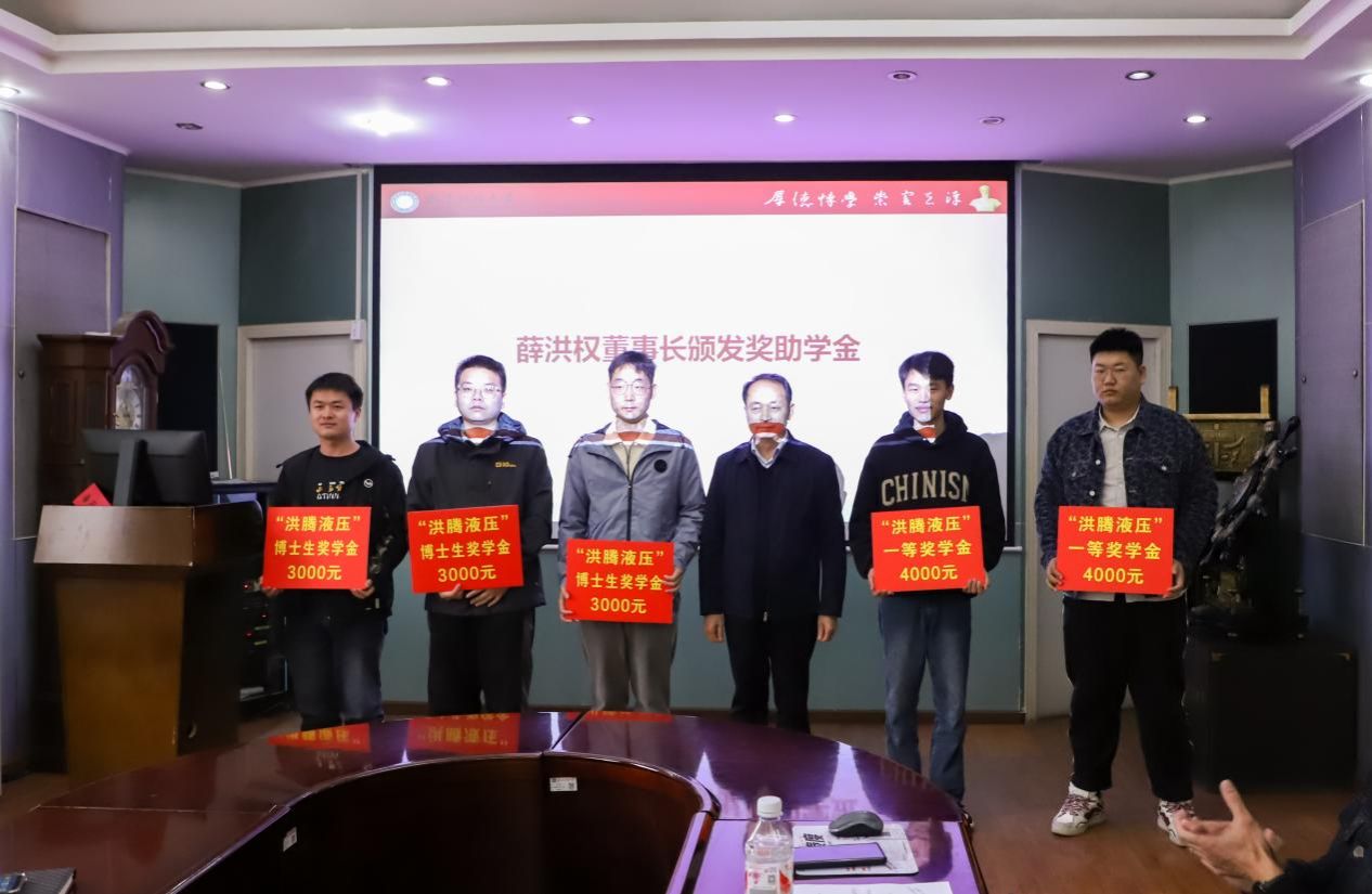 武科大网讯(通讯员 熊琦 吴意)3月27日上午,“抱朴众—洪腾液压”奖助学金颁发仪式在我校青山校区教一楼415会议室举行。江阴市洪腾机械有限公司董事长薛洪权、副总经理余彦冬、机械自动化学院党委书记余淑均、执行院长汪朝晖、党委研究生工作部副部长毛宝胜以及机械电子工程系的教师代表出席仪式。仪式由机械自动化学院党委副书记瞿孝平主持。