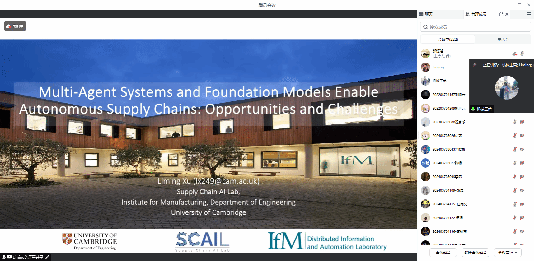 剑桥大学工程系供应链人工智能实验室研究员徐黎明博士应邀作学术报告