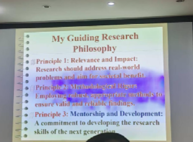 同时,Jatinder (Jeet) N. D. Gupta教授还分享了他的三点研究理念。理念1:强调相关性和影响力,研究应解决现实世界的问题,并以社会效益为目标。理念2:强调方法严谨性,采用可靠、恰当的方法,以确保研究结果有效且可靠。理念3:强调指导与发展,要致力于培养下一代的研究技能。报告结束后,在场师生积极向Jatinder (Jeet) N. D. Gupta教授提问交流,Jatinder (Jeet) N. D. Gupta教授均热情、耐心地给予了详细解答,现场学术交流氛围轻松且浓厚。